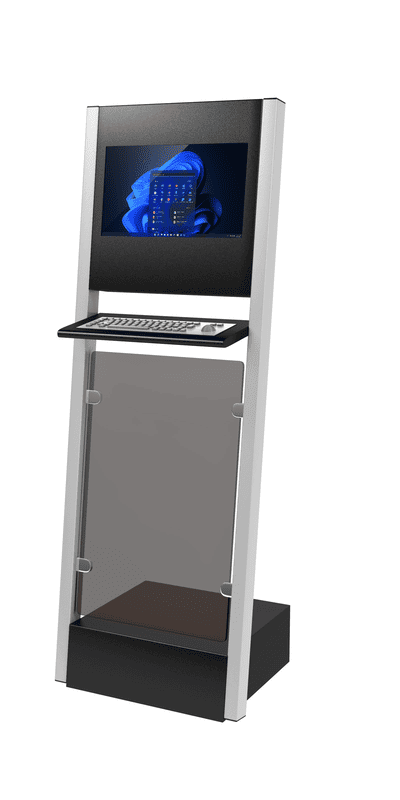 Den hållbara och robusta konstruktionen säkerställer trygg förvaring av dator, touchskärm och annan utrustning. Dess stora ytor ger möjlighet till anpassade budskap för maximal synlighet och exponering.